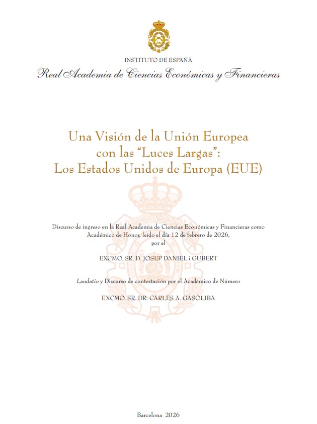 La Biblioteca de la Real Academia de Ciencias Económicas y Financieras (RACEF) ha publicado el discurso de ingreso como Académico de Honor que José Daniel Gubert leyó el pasado 12 de febrero en el marco de una Solemne Ceremonia que se celebró en sede académica con el título "Una visión de la Unión Europea con las luces largas: los Estados Unidos de Europa". La obra puede descargarse en el apartado de Publicaciones de la web corporativa o en el siguiente enlace. [+]